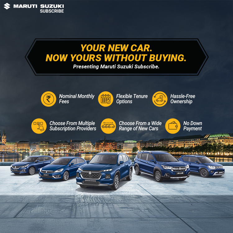 Maruti Suzuki Subscribe enables all customers to enjoy driving their preferred Maruti Suzuki cars without having to deal with all the financial responsibilities that come with owning a car.All you need to do is opt for a monthly subscription plan at a fixed monthly fee, which includes the routine maintenance and insurance costs, and choose a flexible tenure. At Jyote Motors in, Salt Lake, Kolkata, all Hatchback, Sedan, SUV, the MUV models line-up includes Baleno, Invicto, EVitara, Jimny, Ciaz, Ignis, Fronx, Grand Vitara, XL6. Here, you will enjoy Maruti Suzuki Subscribe benefits such as: